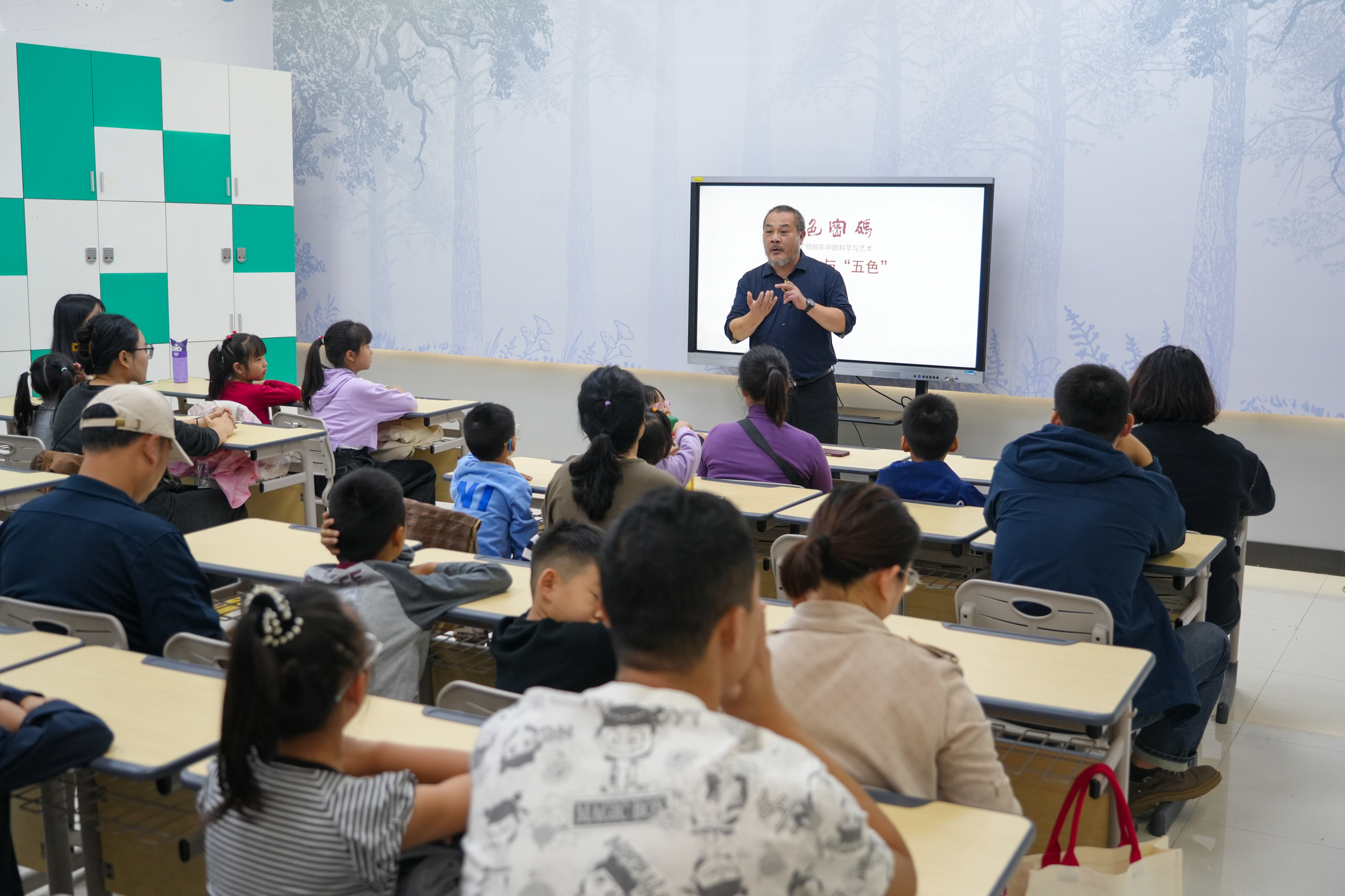 2025年9月27日下午,中国煤炭科技博物馆在全国科普月期间举办“五行与五色”国学美育研学活动,30组亲子家庭通过讲座、观展与绘画实践,探索中国传统色彩体系蕴含的哲学智慧与科学内涵。